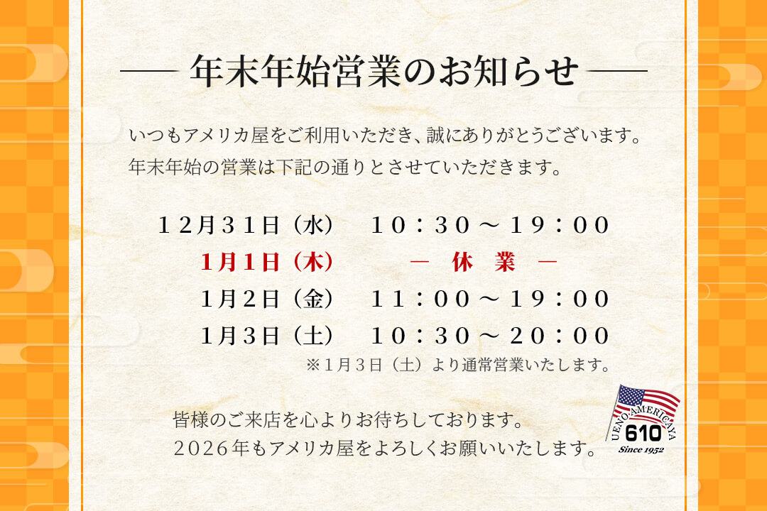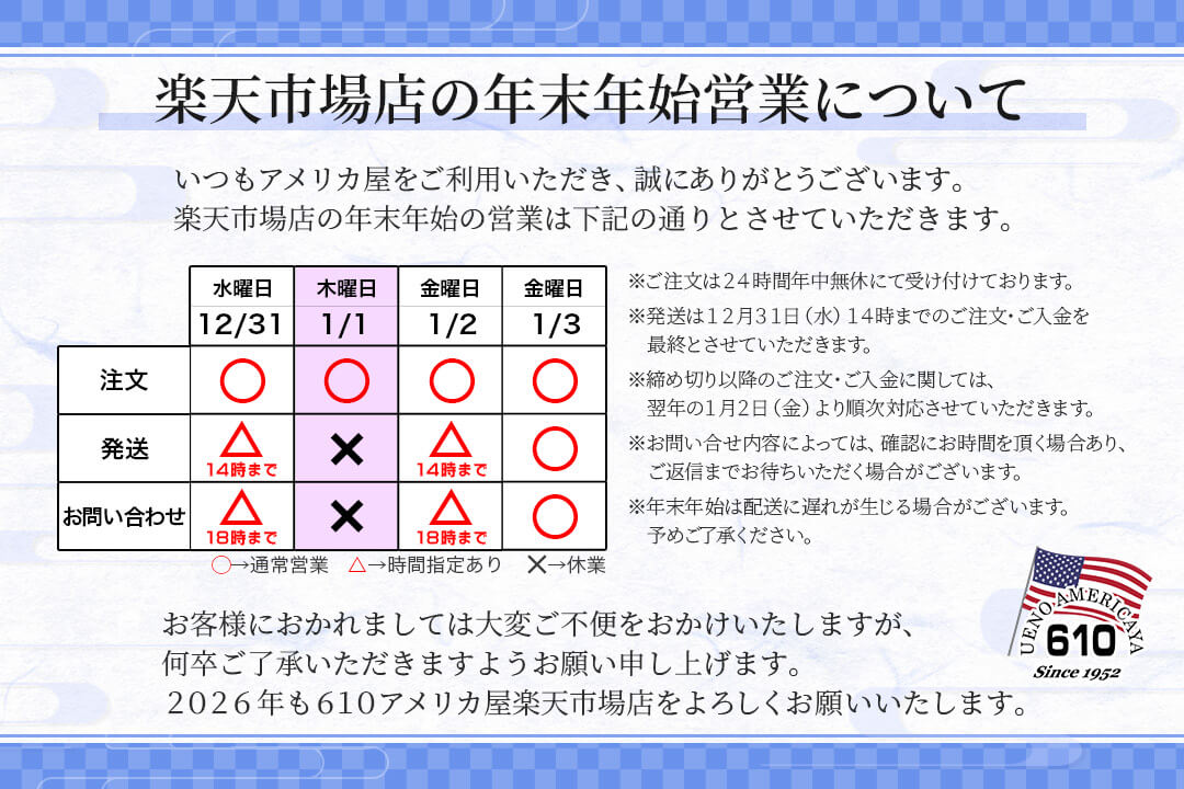 来年もアメリカ屋をご愛顧いただきますようお願いいたします。